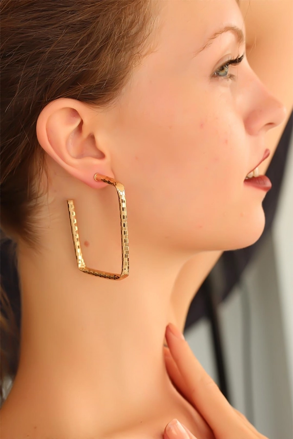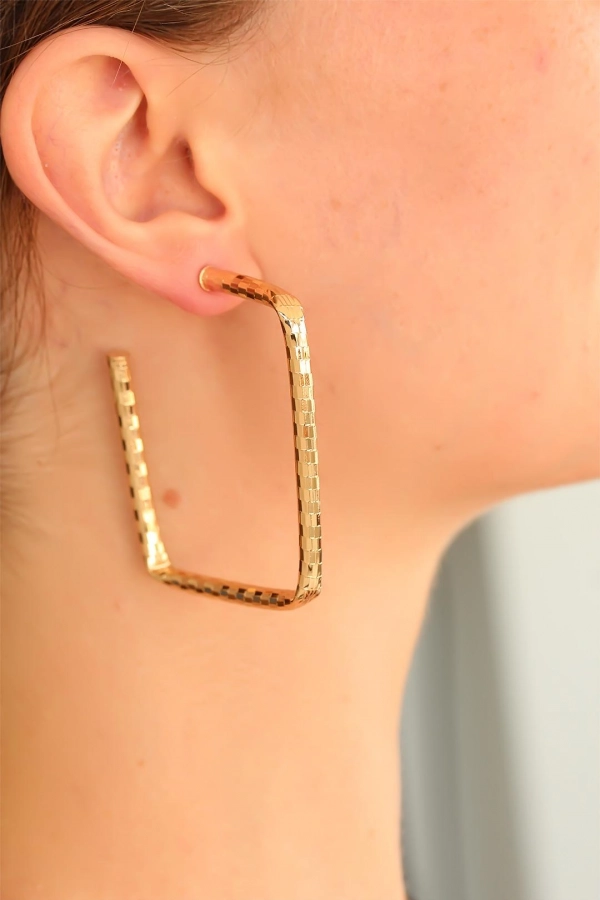 Gold renk metal tasarım Bayan kare Küpe