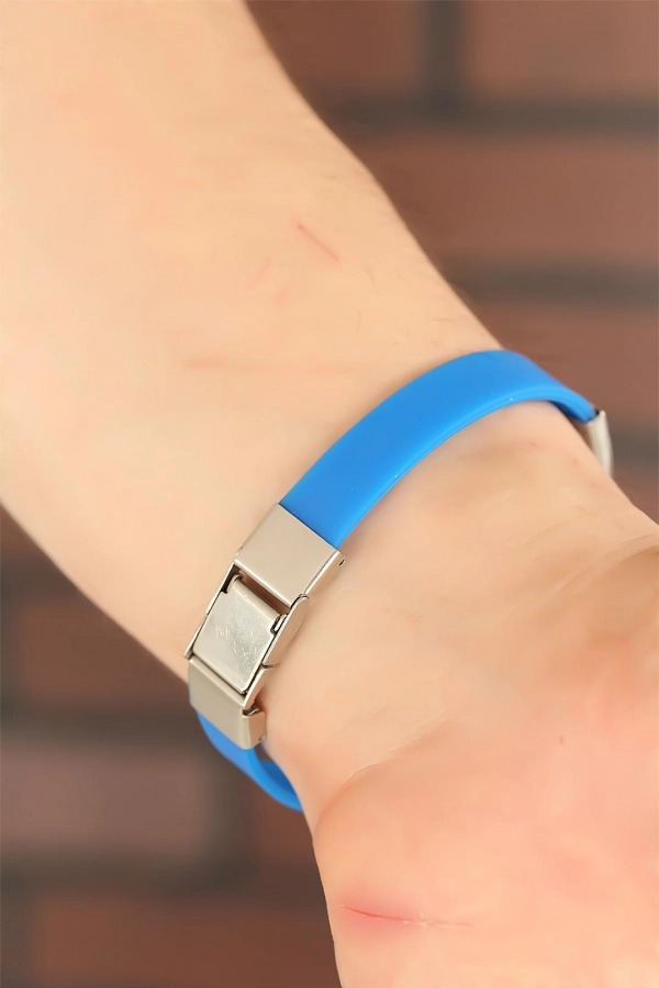 Havalı tarzınız için Mavi Silikon Metal Aksesuarlı Erkek Bileklik modelini tercih edin.