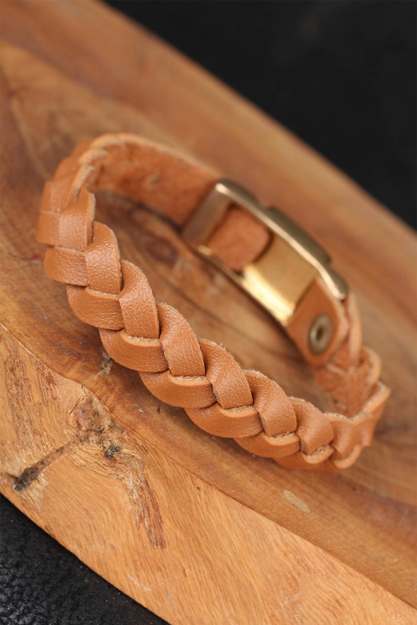 Kombinlerinizi Kahverengi Örgü Model Metal Aksesuarlı Deri Erkek Bileklik ile tamamlayın.