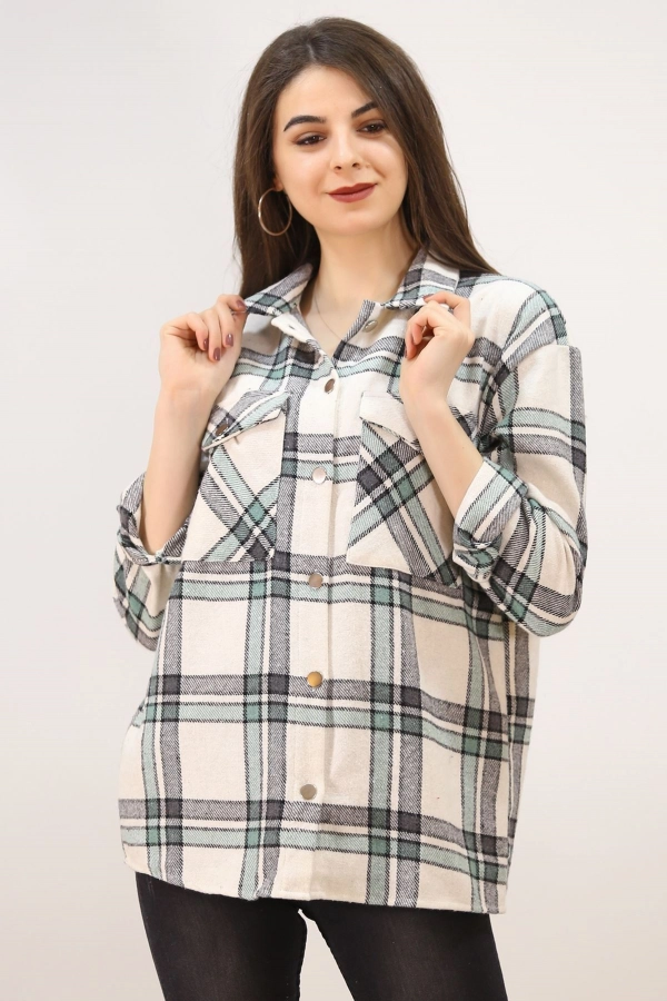 Çizgili Oduncu Gömlek Yeşil
